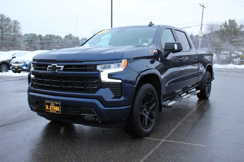 This is a 2022 Chevrolet Silverado 1500 RST Crew Cab. This pickup truck is a 4X4 and powered by an aggressive 5.3L engine with 41K miles. This is in good condition, is well maintained and comfortably loaded with power heated leather bucket seats, power windows and locks, cruise, tilt, back up camera, power sliding rear window, power sunroof, running boards, spray in bedliner and more. Give us a call for more information. At G. Stone Motors we take anything in trade!