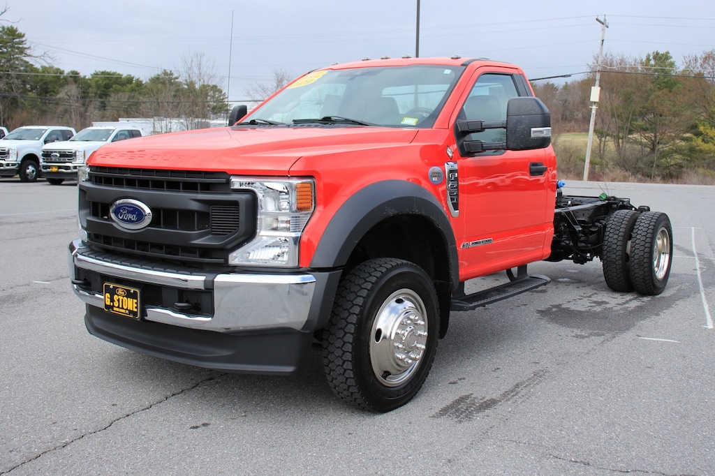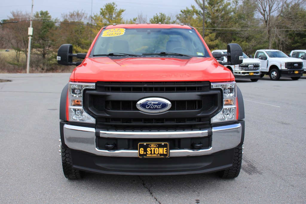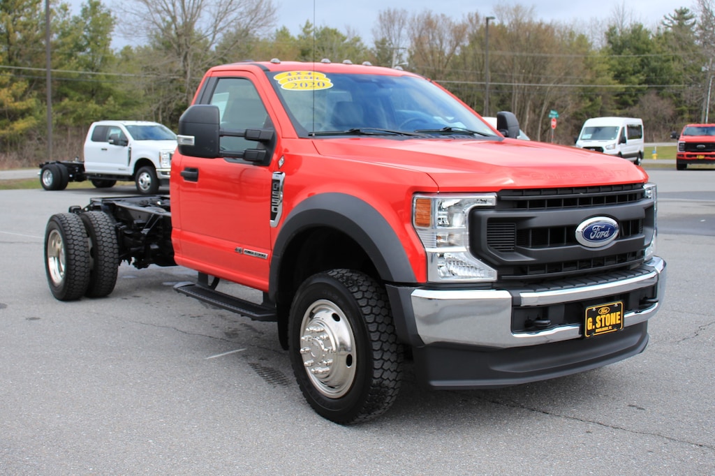 This is a 2020 Ford F-550 XL. This Chassis is a 4X4 and powered by an aggressive 6.7L Power Stroke Diesel engine with 33K miles. This is in good condition, is well maintained and comfortably loaded with vinyl seating, power windows and locks, cruise, tilt, trailer brake controller, running boards, snow plow prep, upfitter switches and more. Give us a call for more information. At G. Stone Motors we take anything in trade!