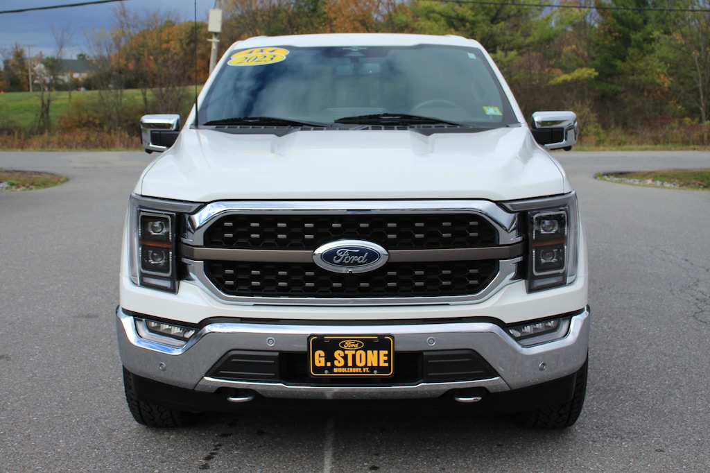 This is a 2023 Ford F-150 King Ranch Crew Cab. This pickup truck is a 4X4 and powered by an aggressive 3.5L EcoBoost engine with 44K miles. This is in good condition, is well maintained and comfortably loaded with power leather heated and cooled bucket seats, power windows and locks, cruise, tilt, tailgate step, power running boards, spray in bedliner, twin panel moonroof and more. Give us a call for more information. At G. Stone Motor's we take anything in trade!