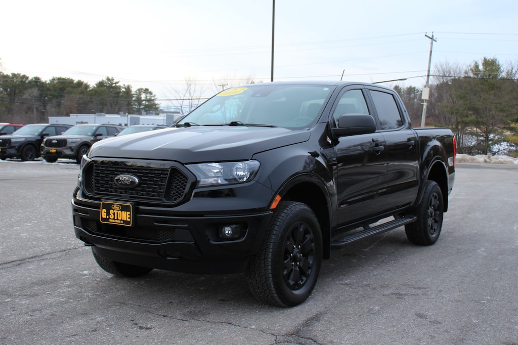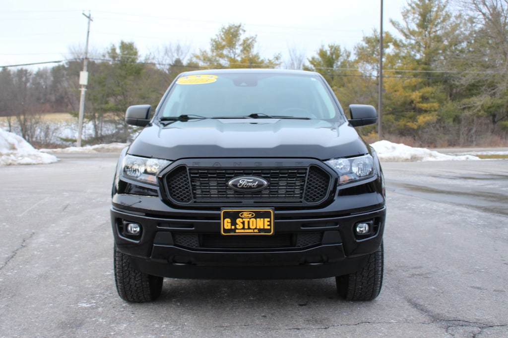 This is a 2023 Ford Ranger XLT Crew Cab. This pickup is a 4X4 and powered by an aggressive 2.3L EcoBoost engine with 15K miles. This is in good condition, is well maintained and comfortably loaded with cloth bucket seats, power windows and locks, cruise, tilt, spray in bedliner, remote start, trailer tow, rear view camera running boards and more. Give us a call for more information. At G. Stone Motors we take anything in trade!