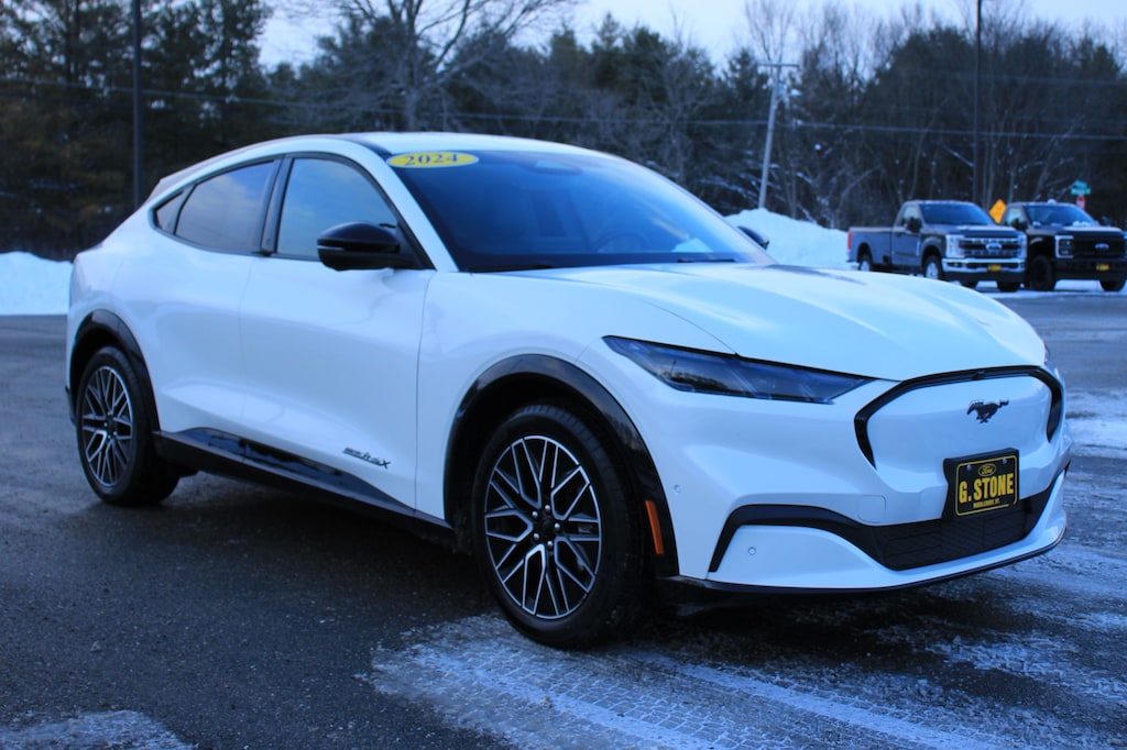 This is a 2024 Ford Mustang Mach-E Premium. This SUV is EAWD and powered by an aggressive 91KWH USABLE EXT NCM BATTERY. This is in good condition, is well maintained and comfortably loaded with power cloth heated bucket seats, power windows and locks, cruise, tilt, mobile power cord, power liftgate, 360 degree camera, rear spoiler and more. Give us a call for more information. At G. Stone Motors we take anything in trade!
